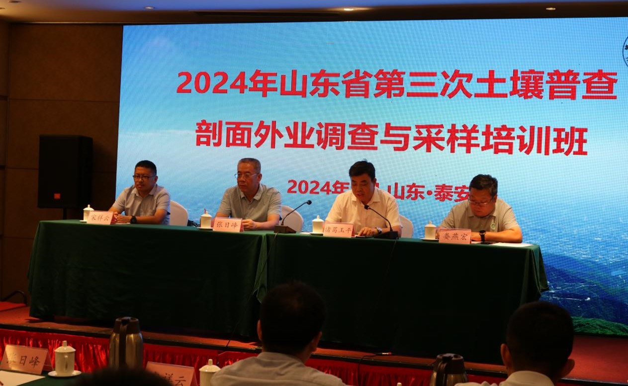 9月7日至9日,由山东省第三次土壤普查办公室组织、山东农业大学承办的2024年山东省第三次土壤普查剖面外业调查与采样培训班在山东省泰安市举办,山东省农业农村厅农田建设管理处副处长、山东省土壤普查办副主任张日峰出席并讲话,山东农业大学资源与环境学院院长诸葛玉平致辞,第三次全国土壤普查国家外业组技术专家李涛、诸葛玉平、黄标为参加培训的技术领队和骨干授课。