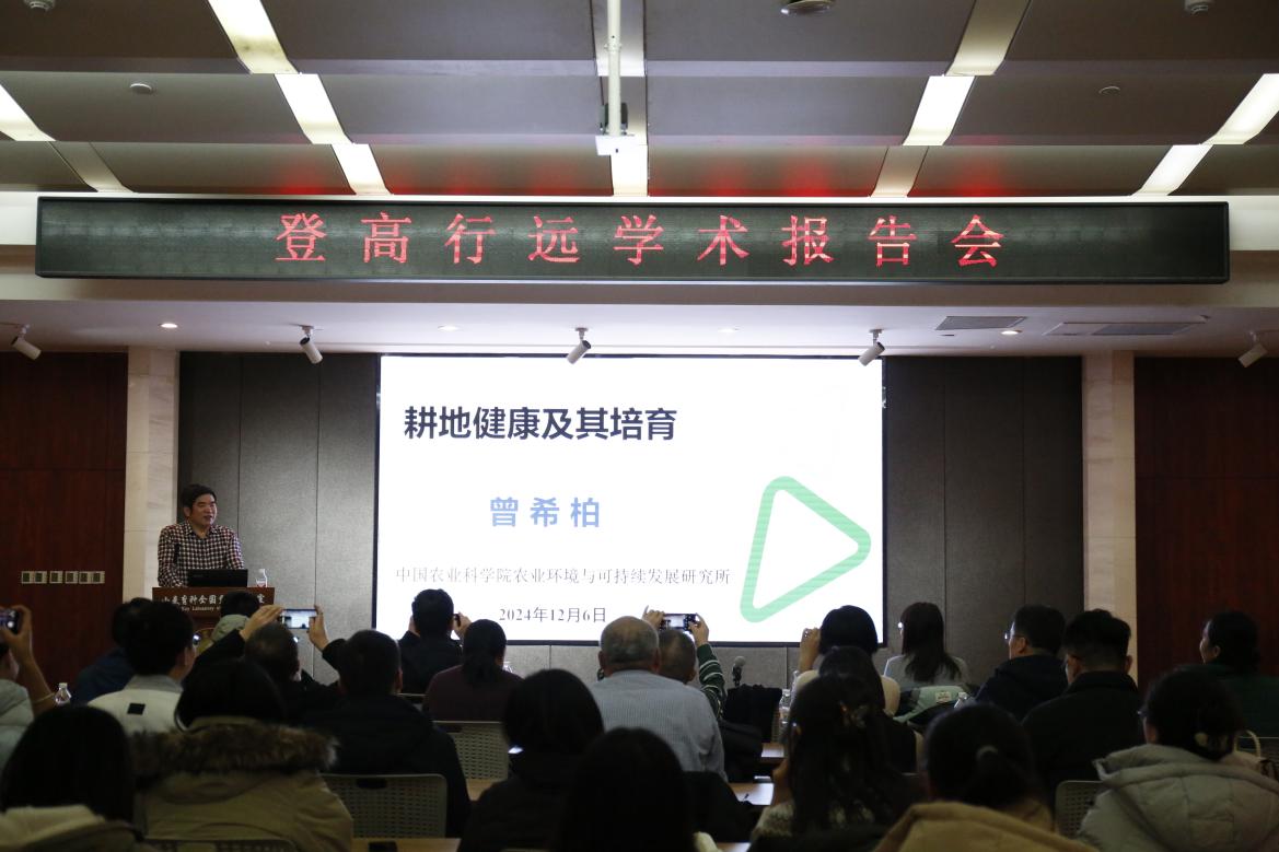 2024年12月6日下午,资源与环境学院特邀中国农业科学院农业环境与可持续发展研究所研究员曾希柏教授在登高楼一楼学术报告厅举办了题为“耕地健康及其培育”的学术讲座,由资源与环境学院院长诸葛玉平主持,各学科老师及全体研究生参加。