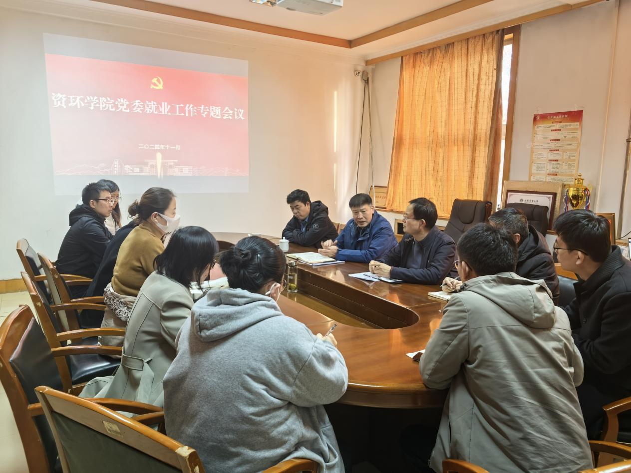 资环学院党委召开就业工作专题研讨会,党委书记郑峰主持会议,学院党委委员、各专业主任和毕业生辅导员出席会议。