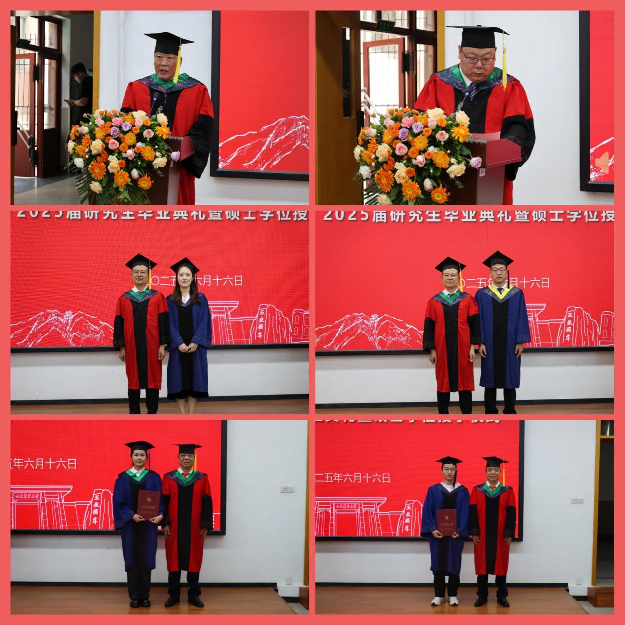 毕业典礼结束后,郑峰书记主持硕士学位授予仪式。娄燕宏副院长宣读2025届硕士学位授予名单。朱西存副院长为每位硕士学位获得者拨穗,诸葛玉平院长颁发学位证书。最后,师生合影留念,共同定格这一难忘时刻。