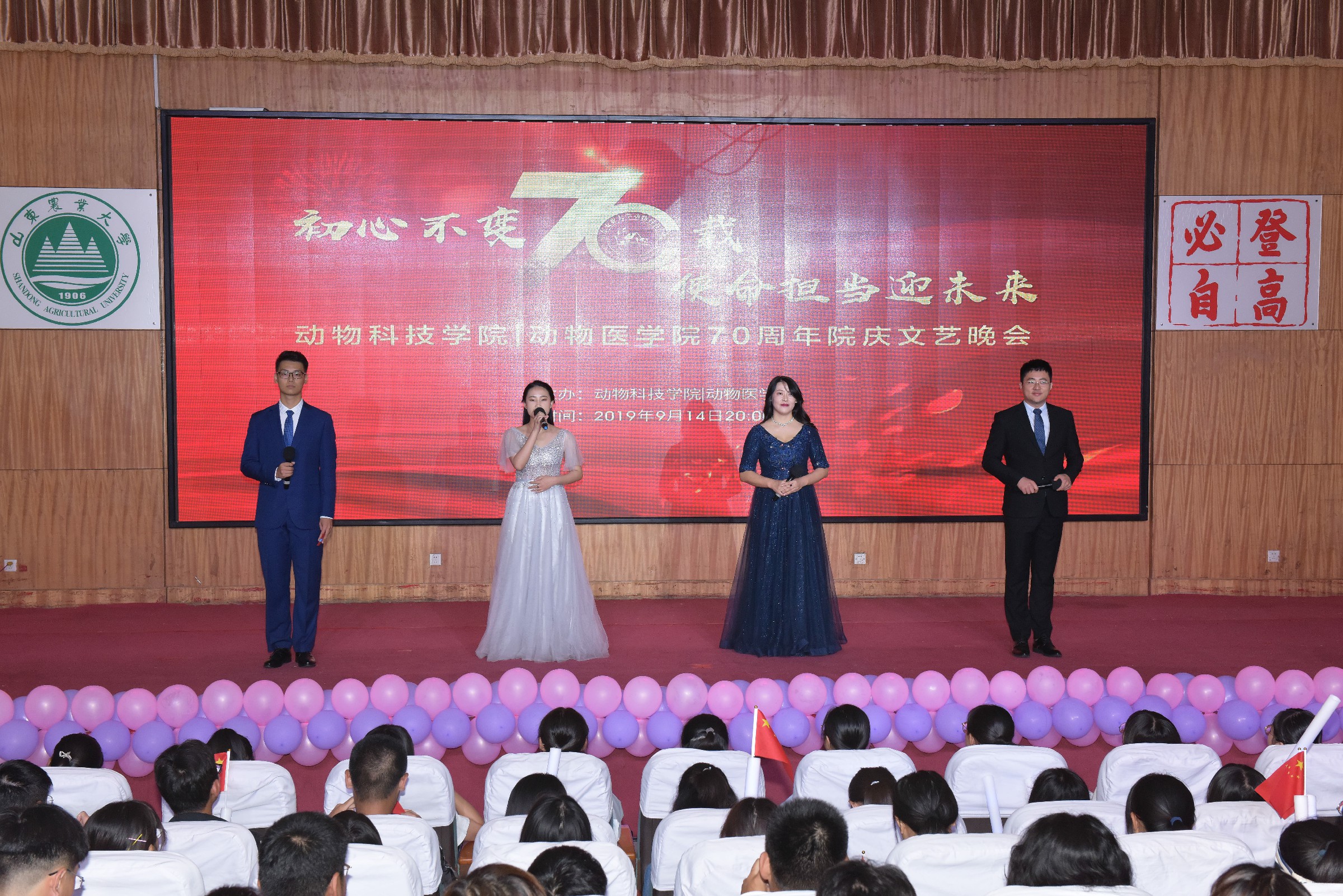 9月14日,动科学院于南校区图信楼第一学术报告厅举办70周年院庆文艺晚会。学院各领导老师、企业代表、校友代表出席晚会。