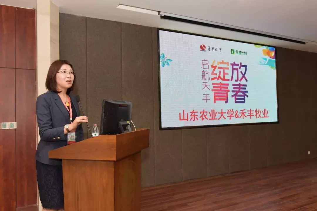 新瑞鹏宠物医疗集团副总裁李丽女士与辽宁禾丰牧业股份有限公司山东区人力资源负责人孔丽丽女士代表合作企业发言。