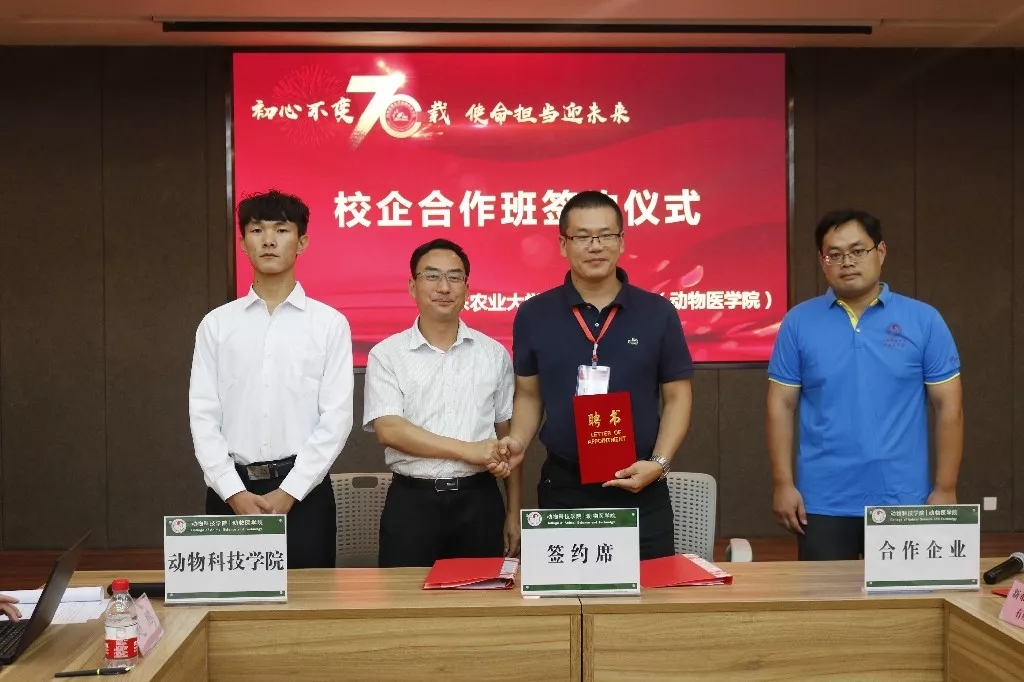 在2018级各班级班主任与学生代表的见证下,学院党委副书记吴连军代表学院与新希望六和股份有限公司等15家企业一一签约,并为各班级企业班主任颁发聘书。