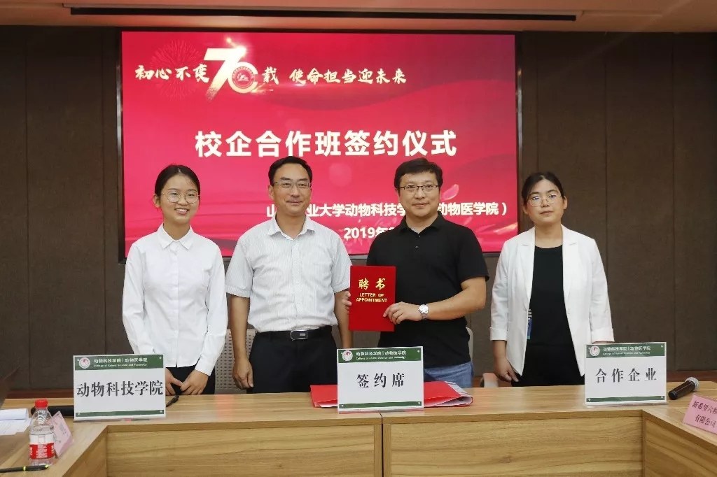 2010年以来,学院不断探索校企合作协同育人模式,经过不断地拓展与完善,学院与新希望六和股份有限公司等39家行业知名企业建立稳固的合作关系,覆盖了2015级至2018级4个年级65个班级,为学生专业实践、实习就业、创新创业、素质拓展等提供了丰富的校外资源与广阔的成长平台。