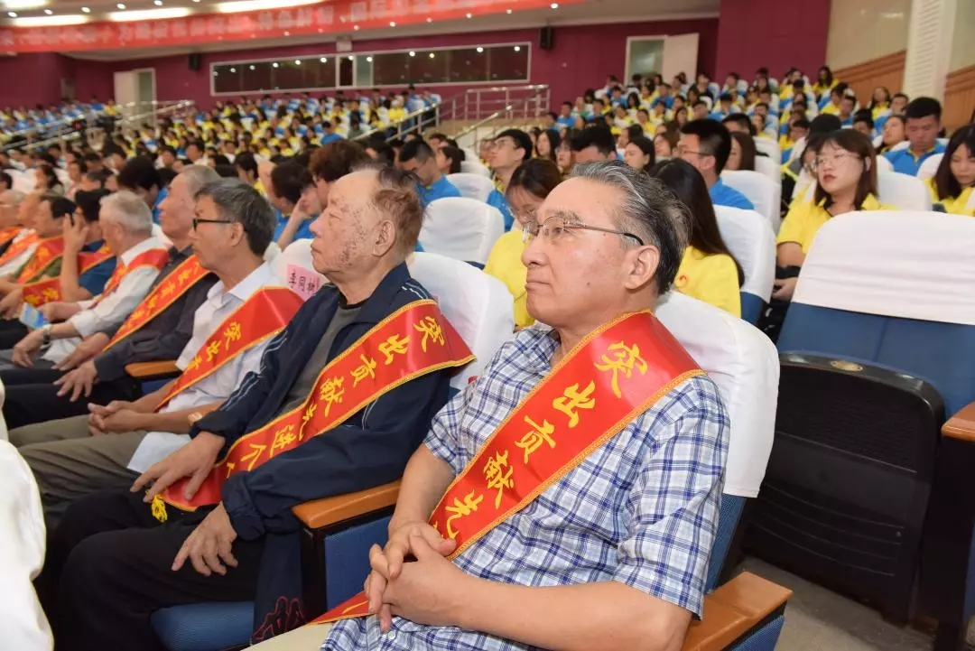 庆祝大会上,还对马鸿胜等37名为学院建设和发展做出突出贡献的离任退休教职工和校友予以表彰,“突出贡献先进个人”身披红色绶带上台领奖,让庆祝大会的气氛更加热烈。