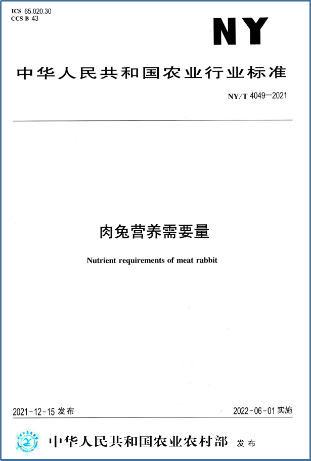 近日,农业农村部批准发布《肉兔营养需要量(NY/T 4049-2021)》标准,该标准于2022年6月1日起实施。这是我国肉兔产业第一个基于系统试验研究与生产实践制定的标准。该标准由山东农业大学家兔营养与代谢团队李福昌教授与刘磊副教授主持,联合国内4个科研院所、企业参加制定,历时十多年完成了我国第一个基于中型肉兔品种与饲料资源而制定的完整肉兔营养需要量标准。该标准涵盖185条营养需要量数据,覆盖肉兔全生命周期6个生理阶段;饲料数据库包含30种原料共计1320条营养素参数,成为目前国际上最大的肉兔饲料数据库。