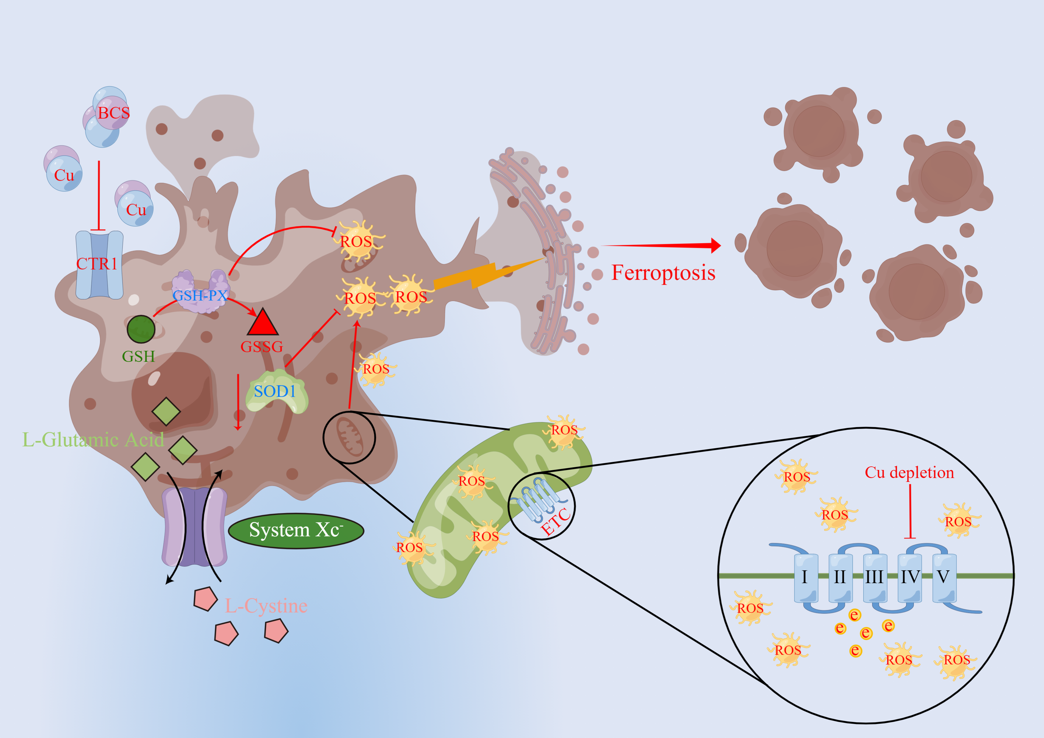 2022年10月,我院李福昌教授课题组在《Antioxidants》杂志发表了题为“Copper Depletion Strongly Enhances Ferroptosis via Mitochondrial Perturbation and Reduction in Antioxidative Mechanisms”的研究论文。该研究探讨了铜耗竭诱导细胞损伤的机制,研究发现,BCS(铜螯合剂)介导的铜耗竭通过扰动线粒体和损伤细胞内源性抗氧化机制增强了铁下垂进程。
