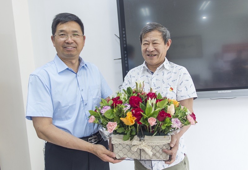在植保学院会议室,张宪省校长把一束鲜花送到董汉松教授手中,叮嘱董汉松老师保重身体,并希望他在学科学科建设、人才培养上发挥党员模范带头作用,在下一轮学科评估中,植物保护学科取得好成绩。