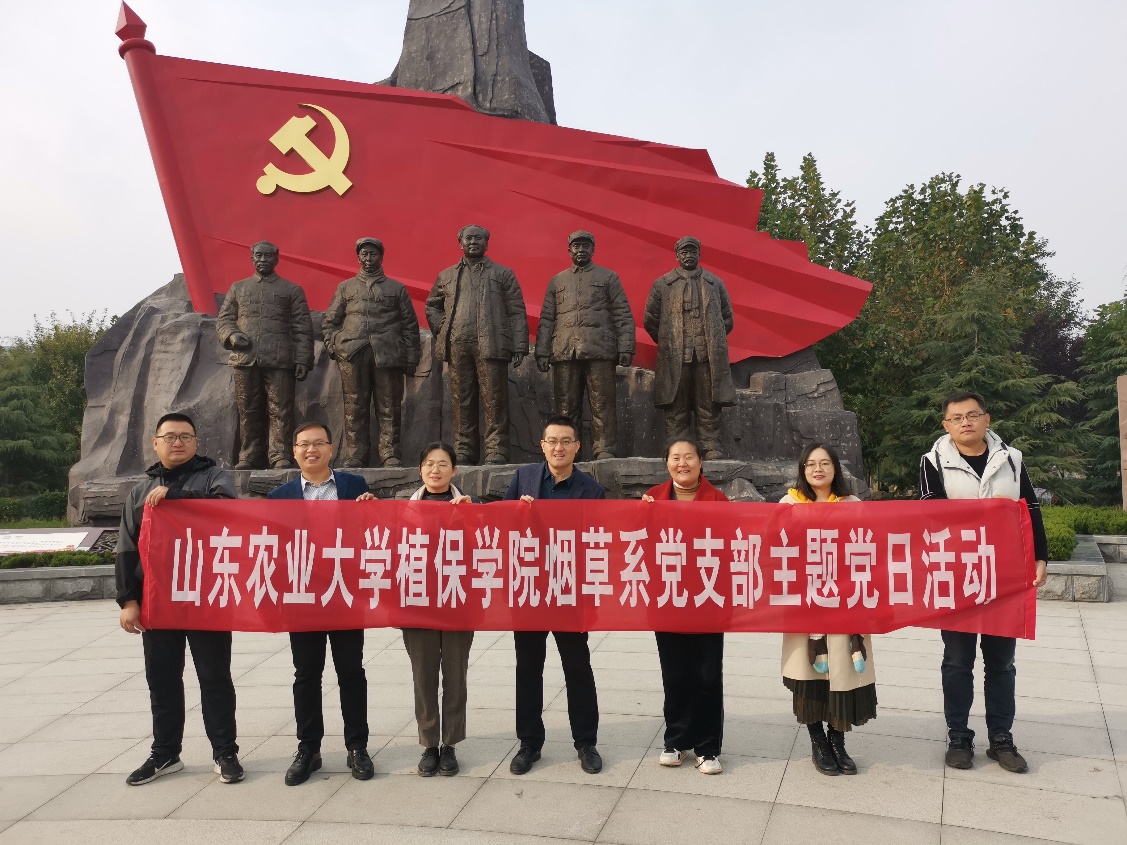 20211024日上午,为推动党史学习教育走深、走心、走实,山东农业大学植物保护学院烟草系党支部赴泰安市南湖党建文化主题公园,参观红色遗迹,领略伟人风采,接受红色教育。