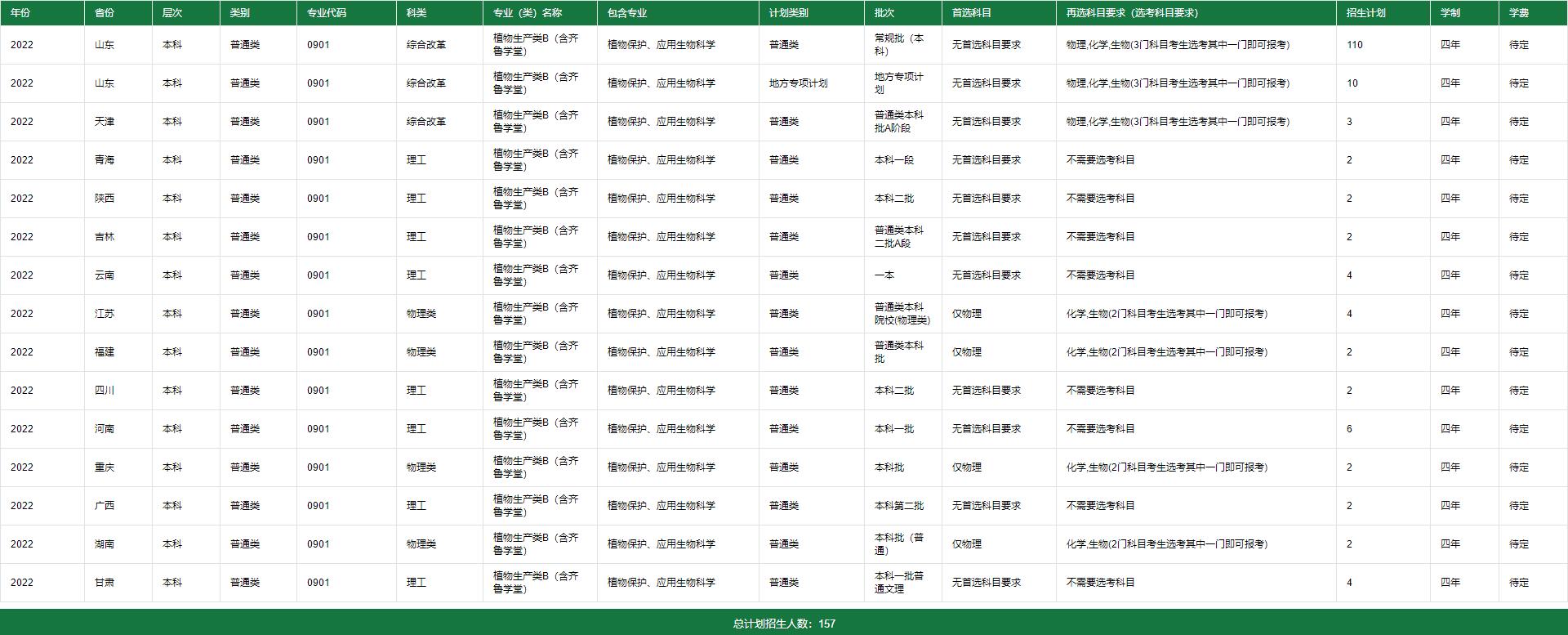 山东农业大学植物保护学院2022年招生计划