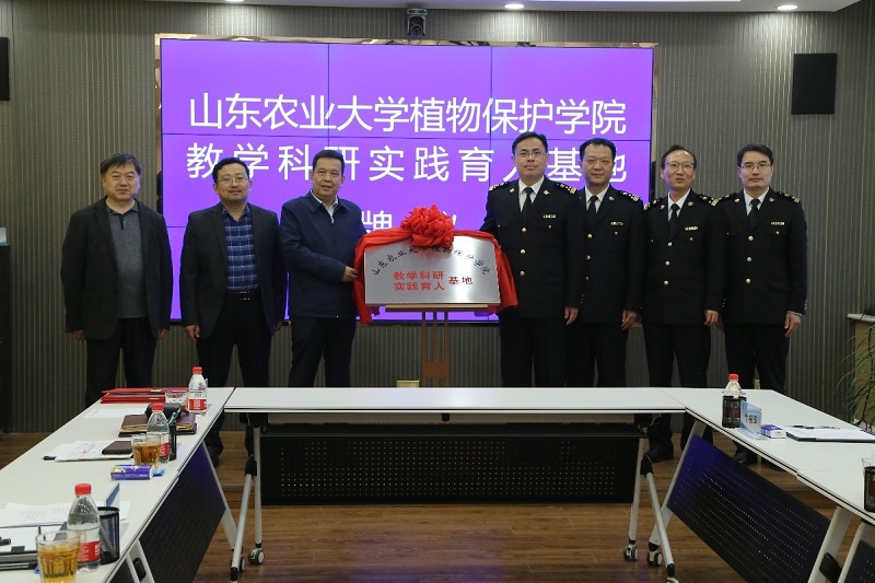 3月23日,植保学院教学科研实践育人基地揭牌仪式在莱芜海关举行。莱芜海关副关长李光、植保学院党委书记刘孟臣共同为基地揭牌。