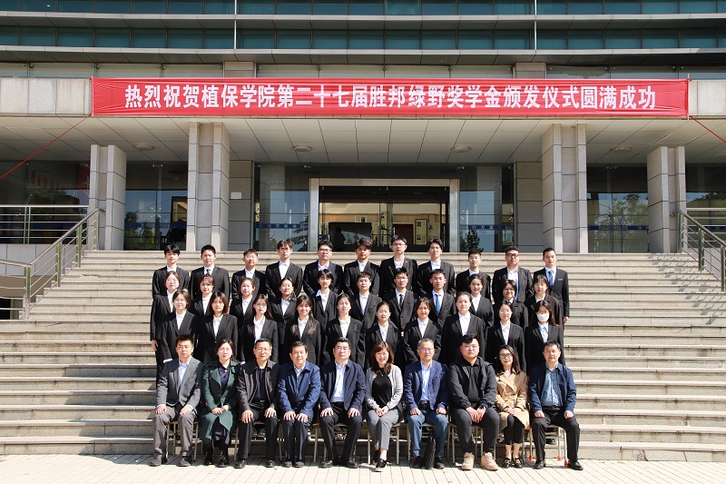 学校相关部门负责人、植保学院负责人、“胜邦绿野”奖学金获奖学生和植保学院师生代表参加。