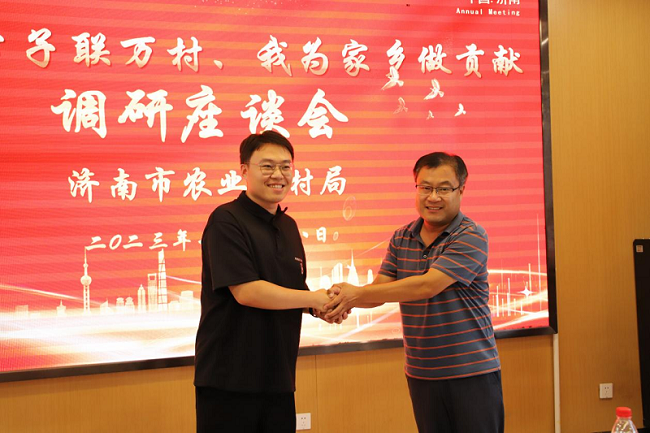 座谈会上,与会人员就如何开展调研活动及如何建立校企、校地合作进行了充分的交流。我校调研活动带队教师与济南市及部分县、区农业农村局相关部门负责人进行了“手牵手开启调研活动”现场结对,大家细致交流,凝聚共识,为调研活动顺利开展奠定了良好的基础。
