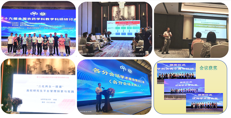 2023年8月18-21日,第十九届全国农药学科教学科研研讨会在重庆召开。山东农业大学作为副理事长单位参会,学院薛超彬、刘峰、慕卫、夏晓明、王红艳、林琎、李北兴等老师和多名研究生参加会议。