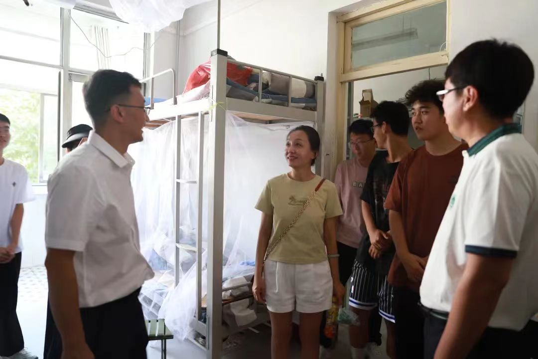 学院领导班子成员和辅导员一行来到宿舍楼,了解宿合布置情况,回应学生关切,在宿舍内,老师们亲切地与同学们拉家常、聊近况、话学业,给同学们送去关怀与温暖,鼓助同学们以饱满积极的状态投入学习和生活,彩里青春风采。
