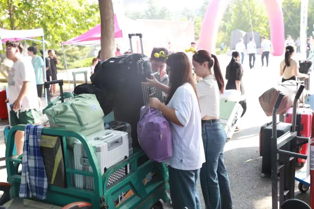 热情忙碌的志愿者化身勤劳的“小蜜蜂”,穿越在热闹的迎新现场,信息核对、登记报到、搬运行李…,烈日当空,没有阻挡志愿者们的迎新热情;汗如雨滴,他们仍坚持为萌新们保驾护航,以积极向上的风貌带领新生开启“开学第一程”。