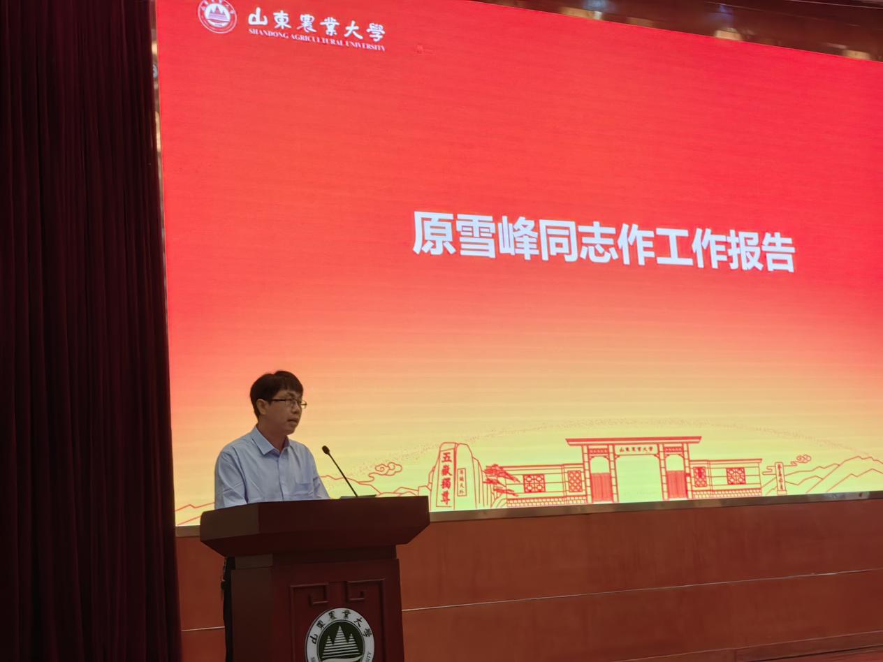 院长原雪峰作汇报发言,他从“推进教学改革,教学工作中心地位更突出;提升创新能力,科研产出硕果累累;强化平台建设,学科建设再上新台阶;坚持引育并举,师资队伍建设水平不断提升;坚持以生为本,人才培养质量不断提高;坚持党建引领,政治组织保障作用更加彰显”这六个方面对学院上半年工作进行总结。同时,针对下半年重点工作进行部署安排。他强调,学院要上下一盘棋、一条心、一股绳,在光荣使命与初心践行同步的新征程中,建设好植保学院。