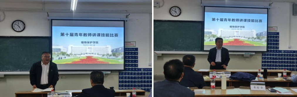 10月18日下午,植保学院举行2023年青年教师讲课比赛。学校教务处处长彭福田,机械与电子工程学院副院长宋月鹏、 学校督导组董厚奎、学院党委书记安宁、院长原雪峰、副院长丁新华、各系教学主任担任评委,全院青年教师进行观摩学习,本次活动由丁新华主持。