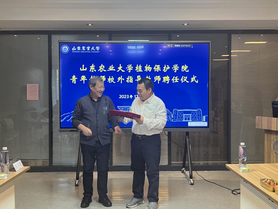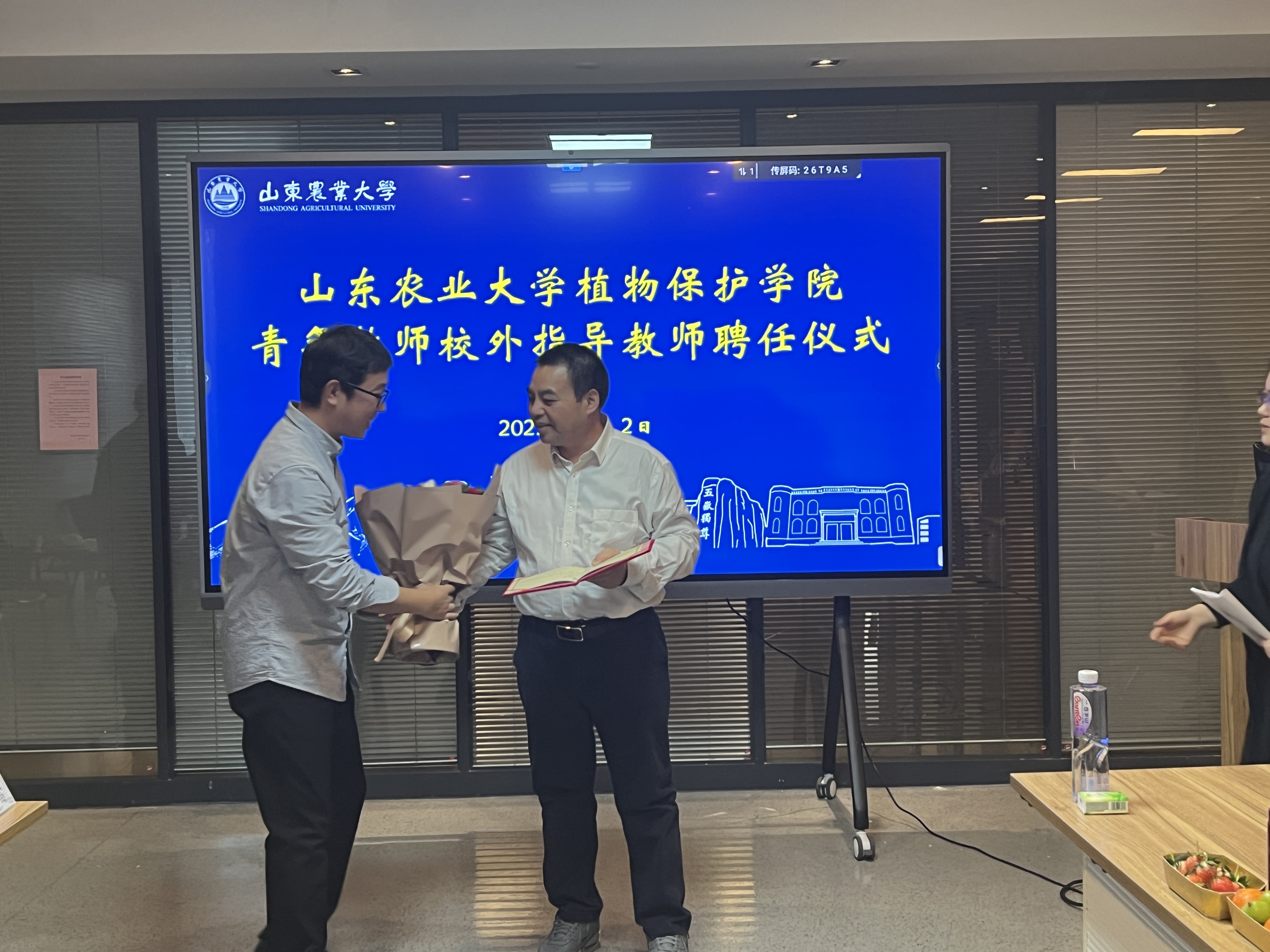 12月2日,植保学院举办青年教师校外指导教师聘任仪式,聘请华中农业大学姜道宏教授作为我院森保系青年教师于成明的校外指导教师。植保学院教学委员会主任董汉松、齐鲁学堂副院长刘会香、森保系主任高尚坤出席仪式,聘任仪式由陈蕾副教授主持。