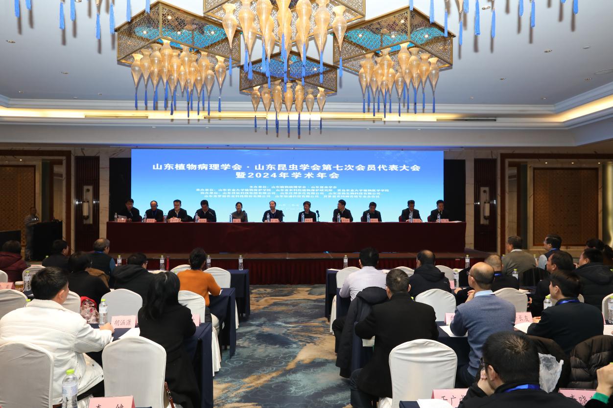 山东植物病理学会和山东昆虫学会第七次会员代表大会暨2024年学术年会于2024年1月11-12日在泰安隆重召开。大会邀请到山东省科协副主席张波,学会部部长、一级调研员葛玉芝出席大会并指导换届选举,张波副主席致贺辞并对两个学会高质量发展提出了具体要求。山东农业大学副校长高立明到会致欢迎辞,全面介绍了学校发展和取得的成绩,希望两个学会在新一届理事会带领下、在省科协的坚强领导下、在国家级学会的大力支持下,勇于担当、守正创新,不断提高科技服务能力,在全省现代农业高质量发展中取得更大成绩、做出新的更大贡献。中国植物病理学学会理事长韩成贵和中国昆虫学会理事长戈峰分别致贺辞,祝贺两个学会取得了骄人成绩,也对学会的发展提出了建议和希望。