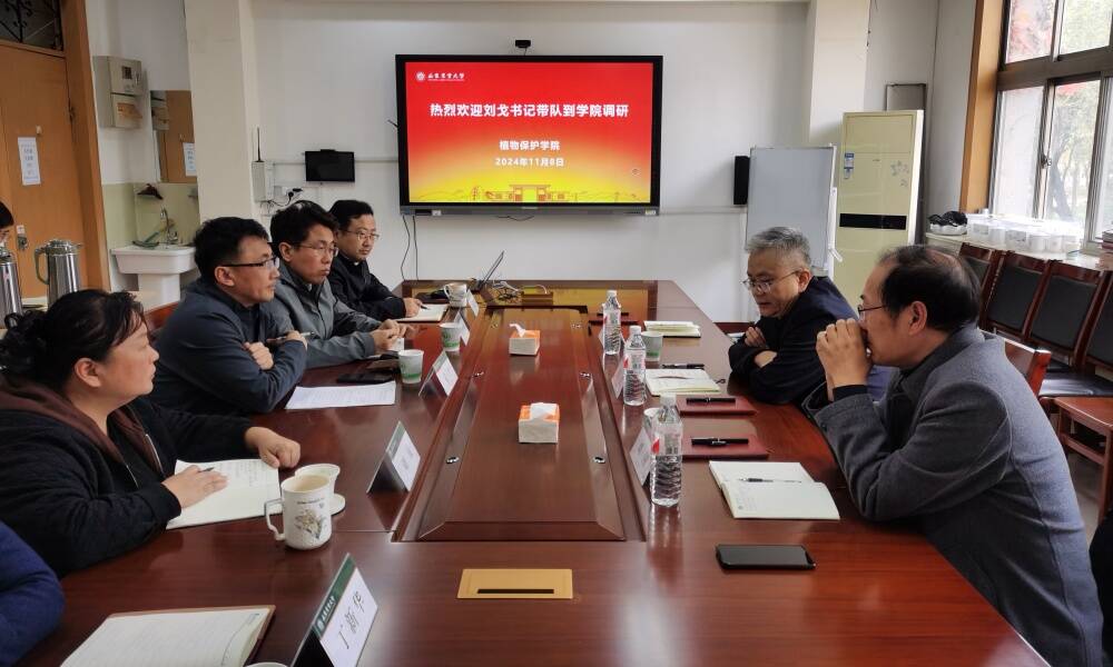 11月8日,学校党委常委、纪委书记、监察专员刘戈一行到植保学院调研,深入了解学院全面从严治党主体责任落实情况、“一把手”和领导班子履职尽责情况、“清廉山农”建设情况,并与学院领导班子成员座谈交流。
