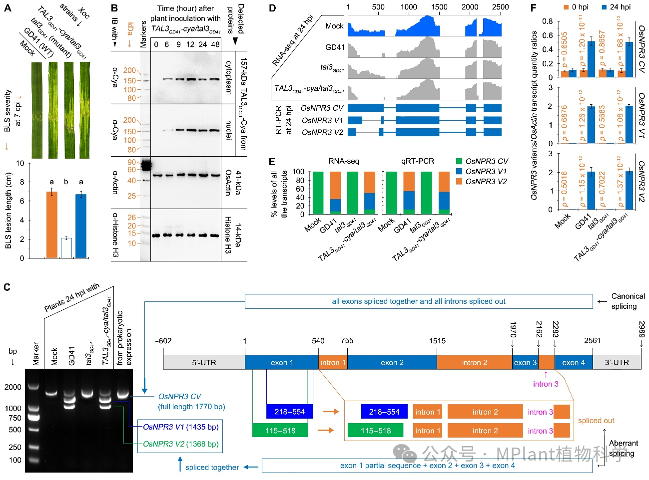 图1. TAL3GD41诱导OsNPR3可变剪接