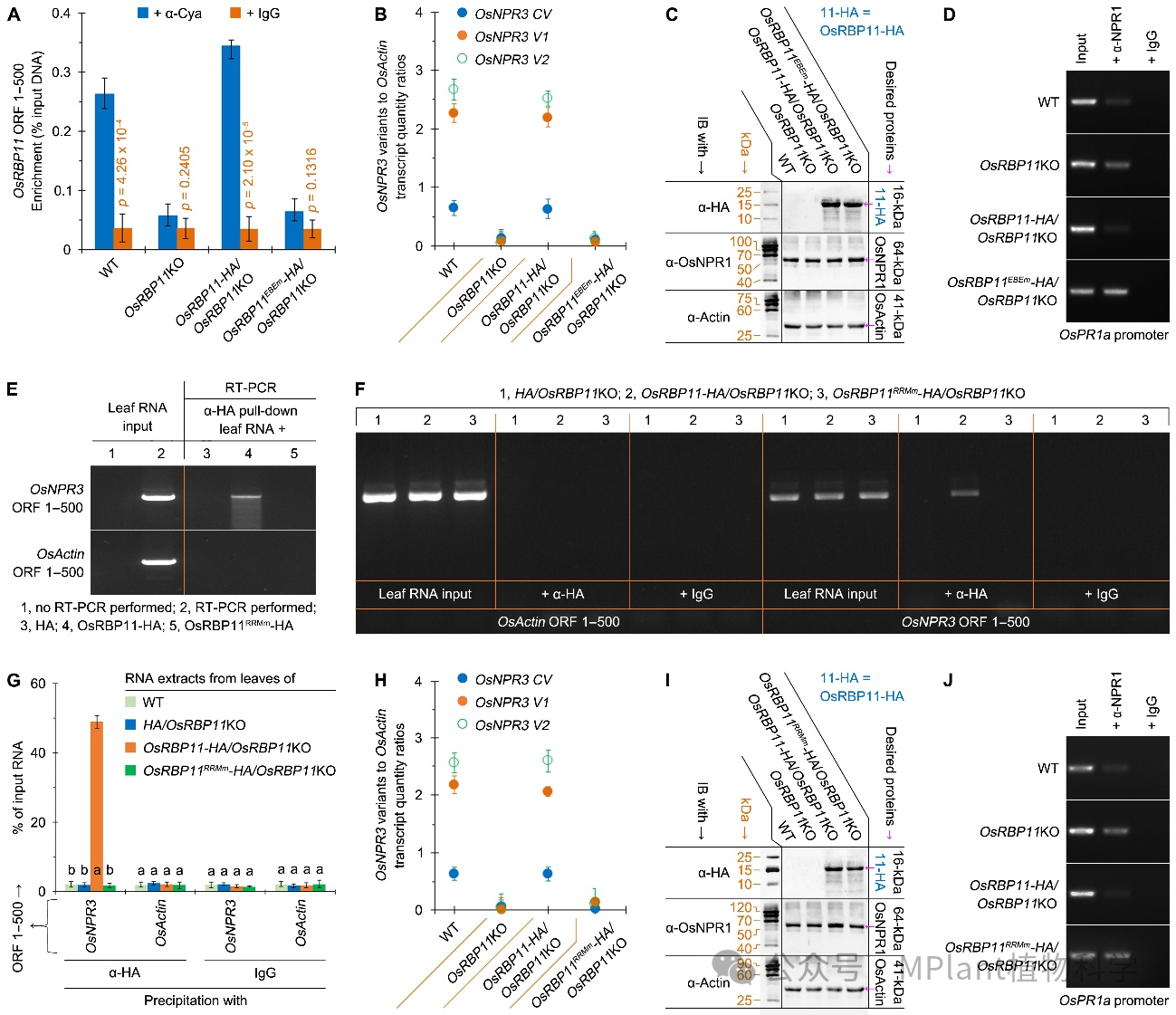 图3. 抑制OsRBP11与TAL3GD41或OsNPR3 RNA前体互作则能抑制OsNPR3可变剪接