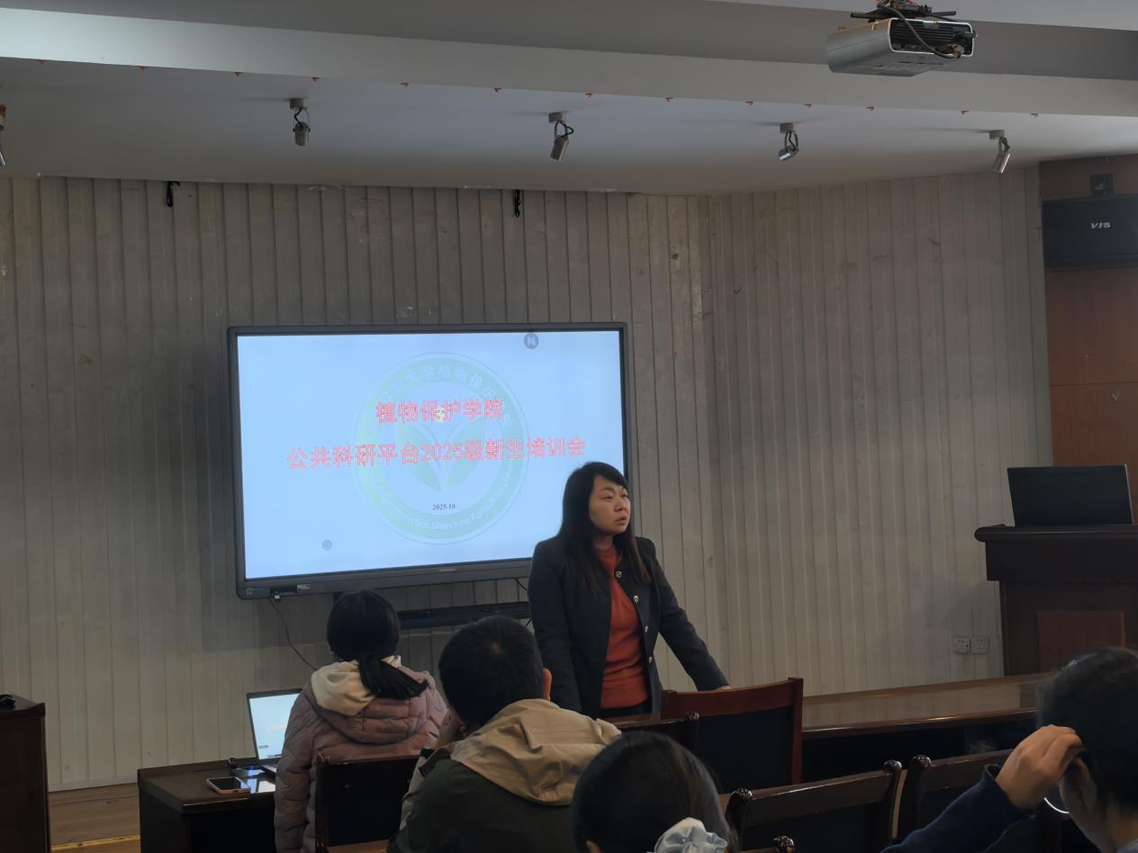 植保学院公共科研平台于2025年10月30日举办了2025级新生培训会,科研平台的6位管理教师和2025级植保新研究生们参加了本次培训会。