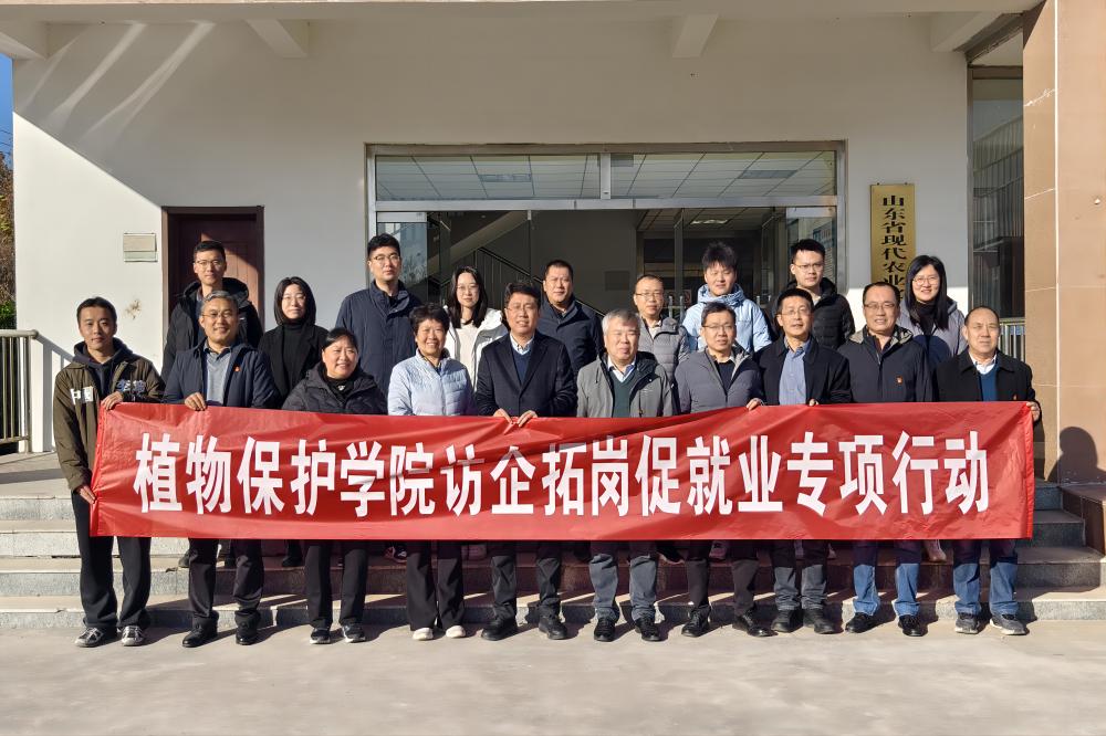 为精准对接行业需求,拓宽学生就业渠道,11月18日,植保学院院长原雪峰带队赴济南市天桥区山东省农药行业协会开展“访企拓岗促就业”专项活动,同步启动2026届毕业生“就业直通车”,成功举行大学生就业实习基地签约揭牌仪式。植保学院党委副书记刘敏、副院长丁新华,山东省农药行业协会会长张昊,党支部书记、秘书长赵波参加活动。