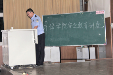 9月7日晚,外国语学院于东校区教学楼217召开“安全教育”座谈会。泰安市公安局迎胜派出所所长范遥担任主讲人,为学院新生讲解安全知识。