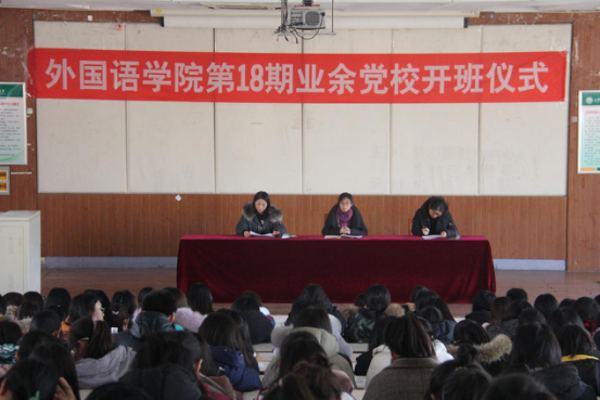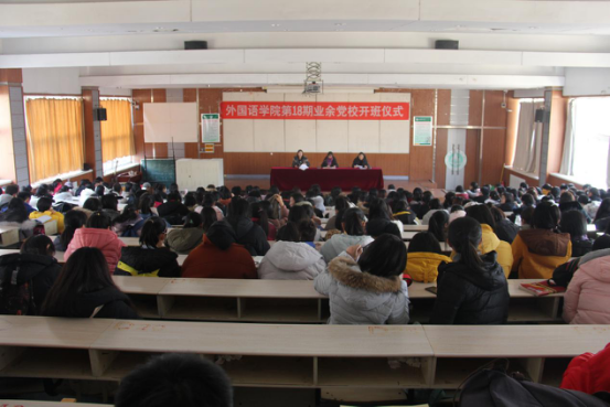1月5日,外国语学院于东校区举办第十八期业余党校开班仪式,学院学生工作负责人、全体辅导员、2017级全体学生及部分高年级发展对象参加仪式。