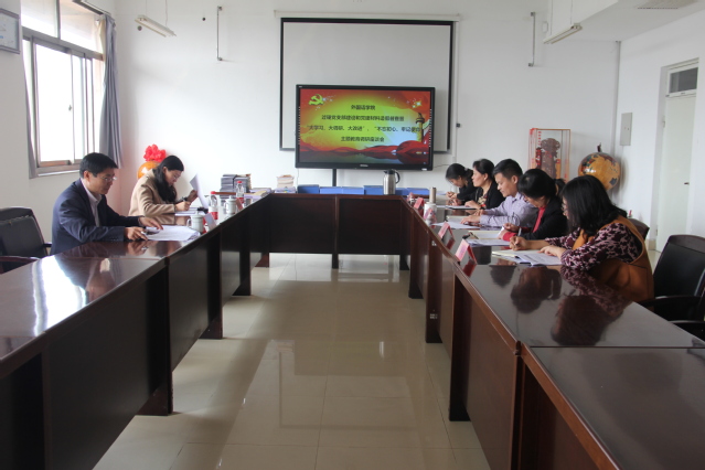 3月29日上午,外语学院召开过硬党支部建设和党建材料造假督查暨“大学习、大调研、大改进”、“不忘初心、牢记使命”主题教育调研座谈会,学校组织部相关负责人和学院党委负责人及各支部书记参加座谈会。