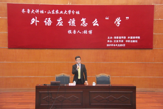 近日,中央电视台主持人张博做客齐鲁大讲坛·山东农业大学分坛,精彩讲述“外语应该怎么学”,外语及其他学院学生参加讲坛。