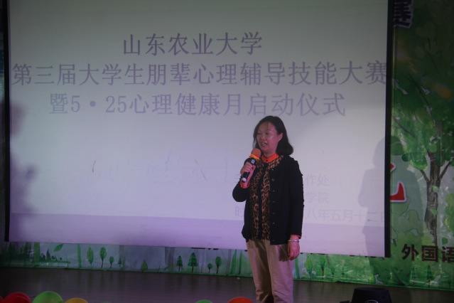 5月12日,由学工处主办、外国语学院承办的山东农业大学第三届大学生朋辈心理辅导技能大赛决赛在东校区落幕,学工处大学生心理健康中心和学院学生工作负责人,学院全体辅导员和各学院学生代表们共同观看此次比赛。
