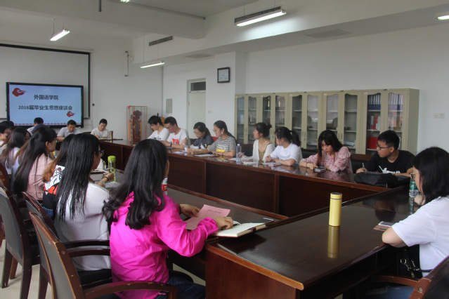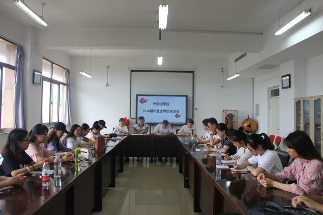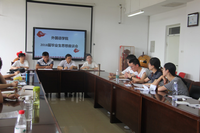 6月19日,外国语学院举办2018届毕业生思想座谈会,学院主要负责人、学生工作负责人、全体辅导员及毕业生代表参加座谈会。