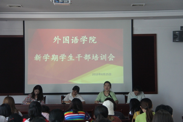 8月25日,外国语学院于文理大楼211召开新学期学生干部培训会。学院学生工作负责人及全体辅导员做新学期工作安排,全体学生干部参加培训会。
