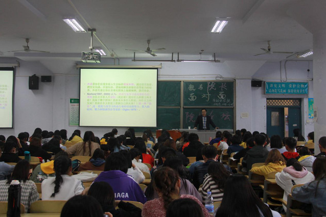 10月23日,外国语学院在东校区图书楼201举办“我与院长面对面”院长论坛。学院院长石运章教授担任主讲人,为2018级全体新生作“外语专业学生实现多彩人生的路径和策略”的报告。