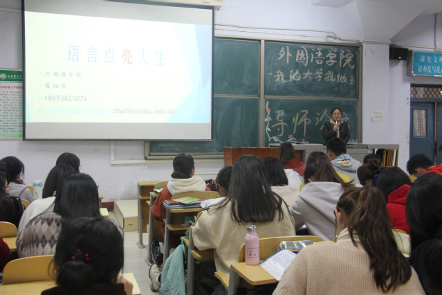 11月6日,外国语学院在东校区举办“学术与我零距离”导师论坛。学院副院长、教授、硕士生导师翟红华担任主讲人,2018级全体新生参加论坛。