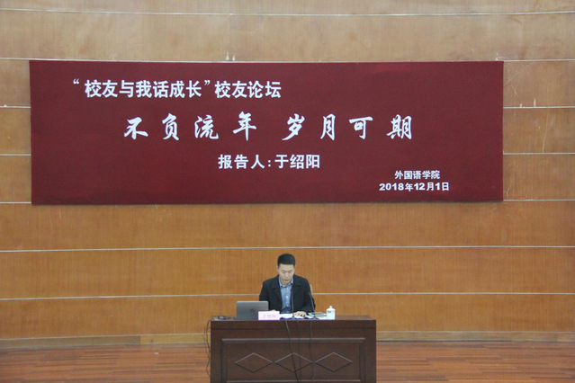 12月1日,外国语学院邀请优秀校友于绍阳做客“校友与我话成长”校友论坛。学院院长石运章、辅导员及2017级、2018级学生共同参加讲坛。