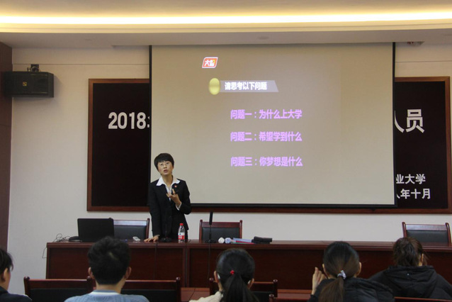 孙玲玲从“为什么上大学”、“希望学到什么”以及“梦想是什么”三个方面向在座学生进行阐述。明确大学是人生下一步起点的基础,大学生应该紧密联系自身实际进行职业规划,完成从学业到专业、再到职业的完美转变。她指出,学业是职业和事业的基础、职业是学业和事业的桥梁、事业是学业和职业的目标,大学生正处于从学校教育到社会的关键过渡期,要为步入社会打下坚实的基础。她建议学生,一是要对自己有明确清晰的了解,弄清楚自己想干什么、能干什么、适合干什么,积极把握自己所学专业的目前就业状况和未来发展趋势。二是要调整接受挑战和执着的心态,日常养成目标感,培养职业兴趣,构建认识事物的坐标系,提升学习、解决问题以及自我教育的能力。最后,她勉励大家职业生涯规划并非一成不变,更应在具体实践中结合自身情况不断进行调整,选择适合自己的规划,这样才能在职业生涯中取得突破、获得成功。