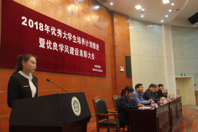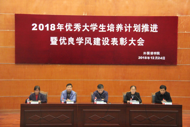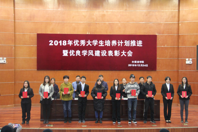 12月24日,外国语学院举办2018年优秀大学生培养计划(ESC计划)推进暨优良学风建设表彰大会,学院主要负责人、全体辅导员、 ESC计划导师及部分学生参加推进会。
