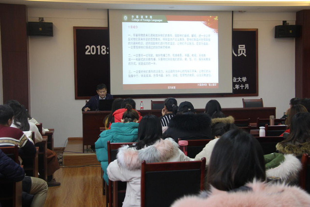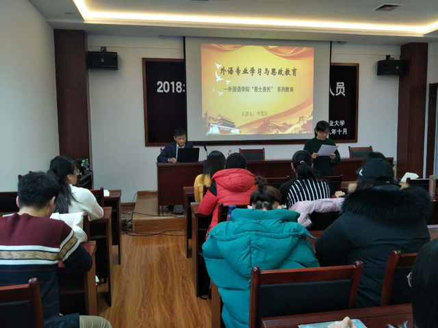 12月21日,外国语学院在文理大楼210举办题为“外语专业学习与思政教育”的“吾土吾民”形势与政策报告会。学院党委书记李茂兵担任主讲人,学生工作负责人、辅导员及学生干部参加讲座。