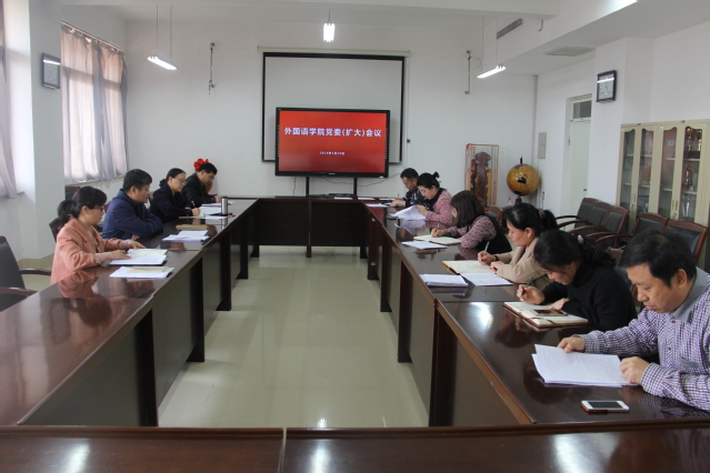 3月19日,外语学院在文理大楼321召开党委(扩大)会议,党委中心组开展专题学习。学院班子、党委委员、支部书记参加会议。