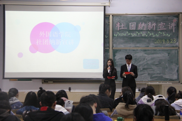 3月23日,外国语学院于东校图书楼204举办社团纳新宣讲会,各社团负责人和2018级新生共同参与活动。