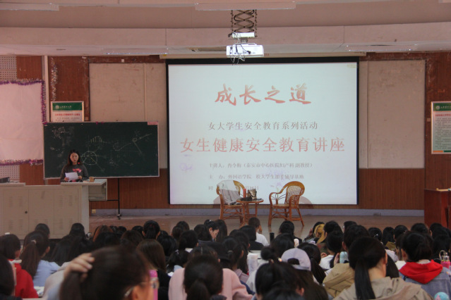 3月26日,外语学院邀请泰安市中心医院妇产科副教授冉令梅于东校区217举办“成长之道”女生健康安全教育讲座,2017级、2018级全体女生参加。
