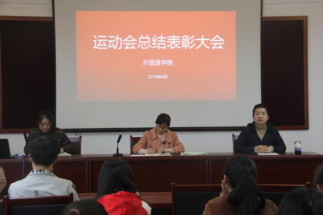 4月28日,外国语学院于文理大楼211举办运动会总结会,学院学生工作负责人、辅导员、主要学生干部和全体运动员参加会议。