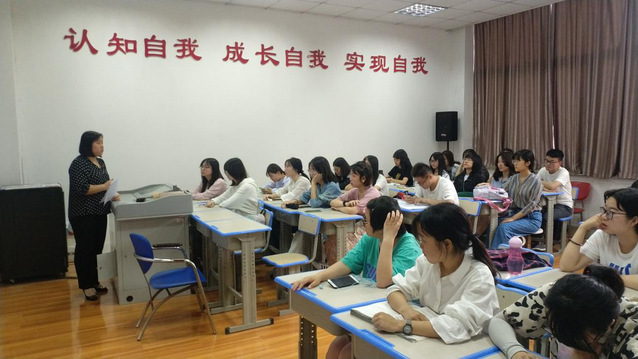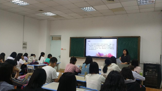 5月14日,外国语学院邀请学校大学生心理健康教育中心尹红霞老师于文理大楼201为学院学生作第6期青春健康同伴教育专题讲座。外语学院学生参加讲座。