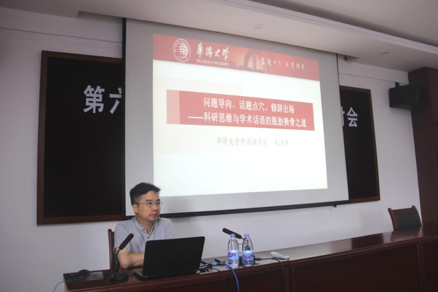 6月24日,受外语学院邀请,华侨大学毛浩然教授来校作题为“问题导向、话题点穴、修辞出场——科研思维与学术话语的脱胎换骨之通”学术报告,学院全体教师参加报告会。