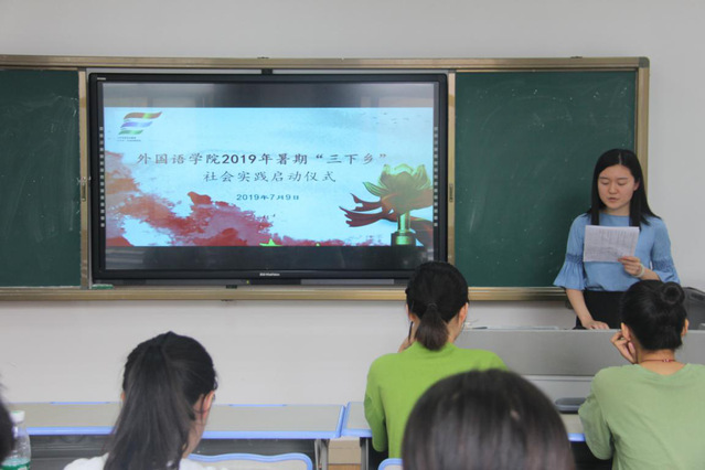 7月9日,外语学院于文理大楼201举行2019年暑期“三下乡”社会实践启动仪式,学院团干部及实践团队代表参加仪式。