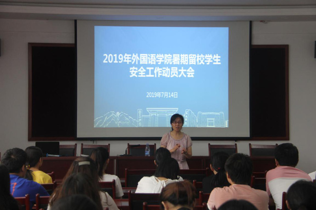 7月14日,外语学院于文理大楼211召开2019年暑期留校学生安全工作部署会,学院学生工作负责人、辅导员及全体暑期留校学生参加会议。